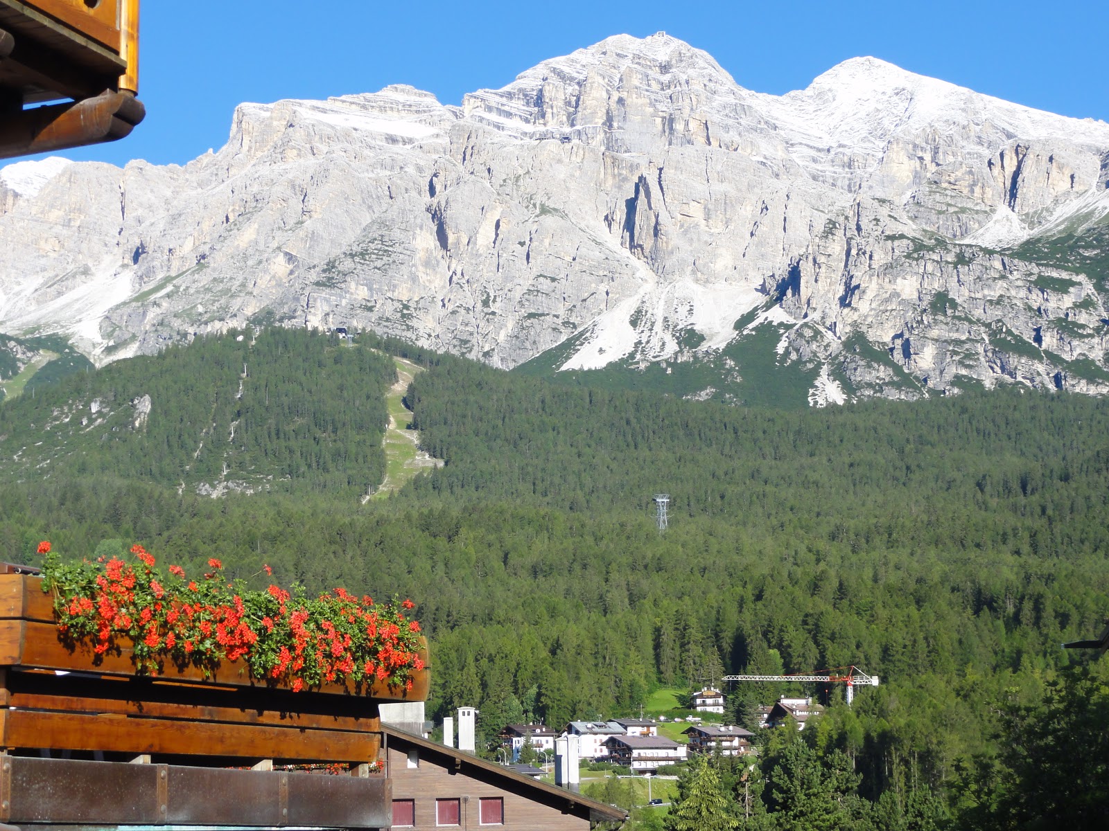 The flower decked terrace of our hotel in Cortina was a great place to wind down with a bottle of wine after a day on the trail.